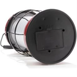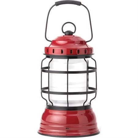 Model – BARE262. Forest Lantern Red. Dimensions: 6 inch x 9.5 inch x 6 inch. Rechargeable. Water resistant. Impact resistant. 5 Watt CREE. 220 lumens. Warm ambient LED light. 4–80 hours run time, depending on setting. Micro USB charging cord. Stamped steel, plastic, and rubber construction. Requires (2) 18650 batteries (included). Color: Red. Boxed. . Made in China