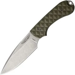 Model – BRAD3FE002A. Bradford Knives 3FE002A – Guardian 3 OD Green. Guardian 3. 6.75″ (17.15cm) overall. 3.5″ (8.89cm) stonewash finish AEB-L stainless blade. OD green sculpted G10 handle. Full, extended tang. Lanyard hole. False edge grind. Leather sheath included. Boxed. Proudly made in the USA.