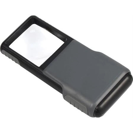 Model – COPO55. Mini Brite 5X Power LED Lighted Magnifier. 5X power LED Lighted Magnifier. Measures approximately 4.38 inch x 2 inch. High power Aspheric lens. Protective sliding plastic sleeve. Excellent for reading maps and fine print. Compact, fits easily into pocket or purse. LED light turns on when opened. A handy tool for those with low vision. Uses 3AAA batteries (not included). Hang packaged. Made in China.