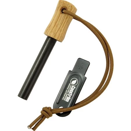 - Stretch material lanyard with a striker plate and reindeer leather lanyard