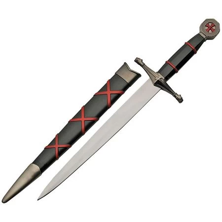Model – CN211437. China Made 211437 – Knights Templar Dagger Red. 16″ overall. 9″ mirror finish stainless dagger blade. Black and red synthetic handle. Metal alloy guard and pommel. Black synthetic scabbard. Boxed. Made in China.