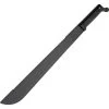 Model – CN926859. China Made Fanatasy Machete 27in. 27 inch (68.58cm) overall. 21 inch (53.34cm) black finish stainless blade. Black cord wrapped handle. Full, extended tang. Lanyard hole. Shoulder strap. Black nylon sheath. Boxed. Made in China.