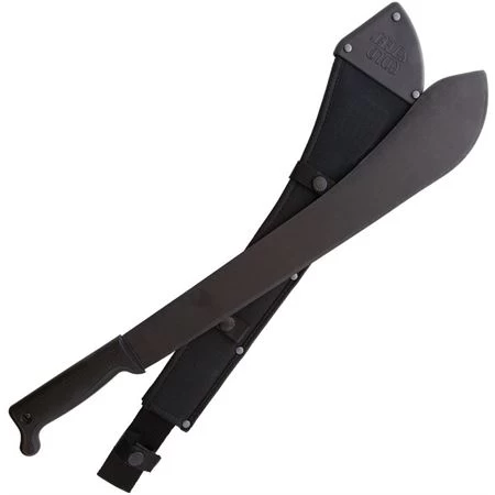 Model – CS97LBMS. Bolo Machete With Sheath. Construction: 1055 Carbon Steel; Weight: 19 oz; Overall: 23.625 inch; Blade: 18 inch l Carbon Steel l Standard Edge l Matte Finish; Handle: Black l Polypropylene; Other Info: Baked-on anti-rust matte finish. Lanyard hole. Black Cor-Ex belt sheath. Bulk Packed.