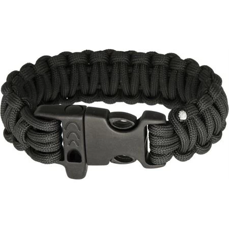 Model – CBR359. Survival Bracelet Black. Survival Bracelet. 8 inch overall. Black. Paracord construction. Hang packaged.
