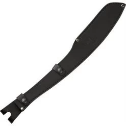 Model – CTK41217HCS. Parang Machete With Brown Hardwood Handle. 24 inch overall. 17.5 inch 1075 high carbon steel blade with black epoxy powder coating. Full tang. Brown hardwood handle with lanyard hole. Black leather belt sheath. Made in El Salvador.