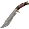 Model – DM1150. Damascus 1150 – American Flag Bowie. 12.25″ overall. 7.25″ Damascus steel bowie blade. Red, white, and blue smooth bone handle. Brass guard. Full tang. Brown leather belt sheath. Boxed. Made in Pakistan.