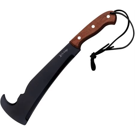 Model/Part Number – ERMHT003BK. Elk Ridge Machete. 15″ (38.1cm) overall. 9.5″ (24.13cm) black finish stainless blade. Brown wood handle. Full tang. Lanyard hole. Black nylon belt sheath. Boxed. Made in China.