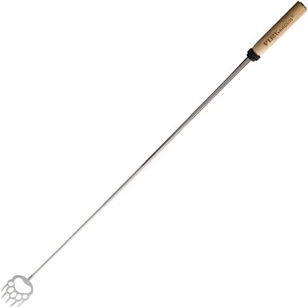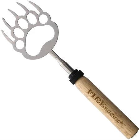 Model/Part Number – FBG030006BC. Firebuggz Reach N Roll Spinning Roaster. Stainless roaster bear claw-shaped head. Unique flat design cooks food more evenly. Extends up to 34″ for safety. Wooden handle. Perfect for roasting hotdogs and marshmallows. Rotating thumb wheel. Hang packaged. Made in China.
