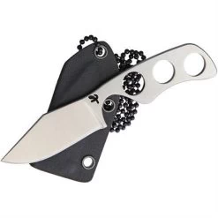 Model – FRDB. Fred Perrin B – Le Bowie. 5 7/8″ overall neck knife. 2 1/2″ blade. One-piece 12C27 stainless construction. Handle has drilled hole designs. Molded black Kydex neck sheath with black cord lanyard. Made in France.