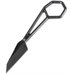 Model/Part Number – KG0001A4. Kansept Hex Neck Knife Black Ti. 5.63″ (14.3cm) overall. 2″ (5.08cm) black titanium coated 14C28N Sandvik stainless blade. One-piece construction. Finger ring. Ball chain lanyard. Black Kydex neck sheath. Boxed. Made in China.