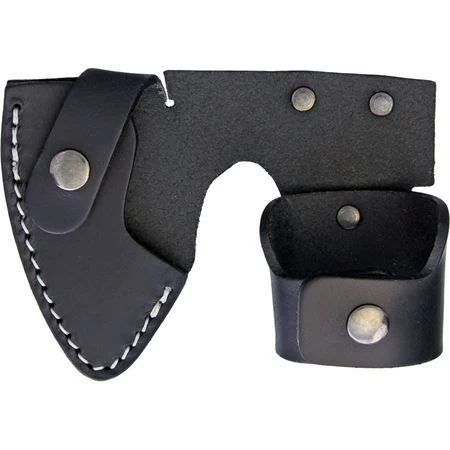 Model – KAR4042. Vuogas Axe Brown. 10.25 inch overall. 4.88 inch satin finish stainless axe head with 3 inch cutting edge. Oiled curly Birch handle. Reindeer antler pommel. Black leather belt sheath. Includes 4 inch overall diamond sharpener with brown leather sheath. Gift boxed.