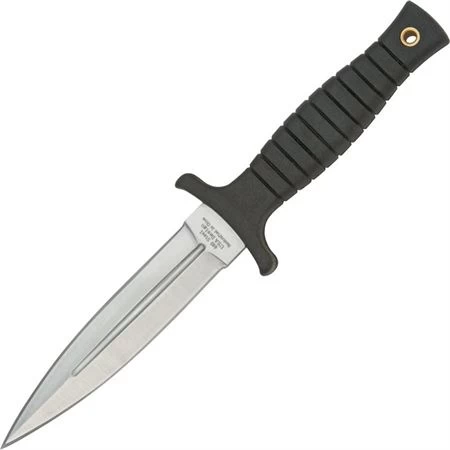 Model – MT097SL. MTech 097SL – Boot Fixed Blade Knife. 9″ overall. 4.5″ stainless dagger blade. Black grooved rubber handle. Lanyard hole. Black nylon belt sheath. Made in China.