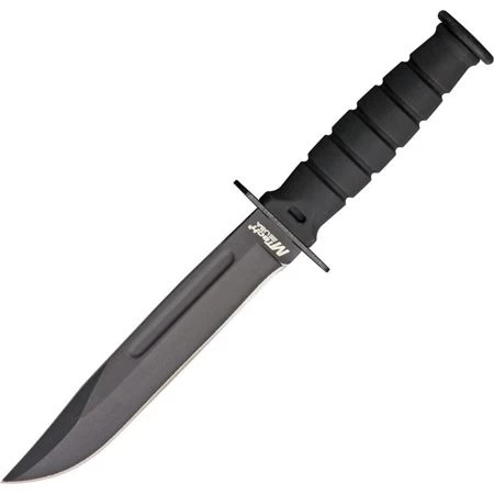 Model – MT632DB. MTech 632DB – Kabai Fixed Blade Knife. 6″ overall. 3.38″ black coated 440 stainless clip point blade. Black grooved rubberized handle. stainless guard and pommel. black synthetic neck sheath. Made in China.