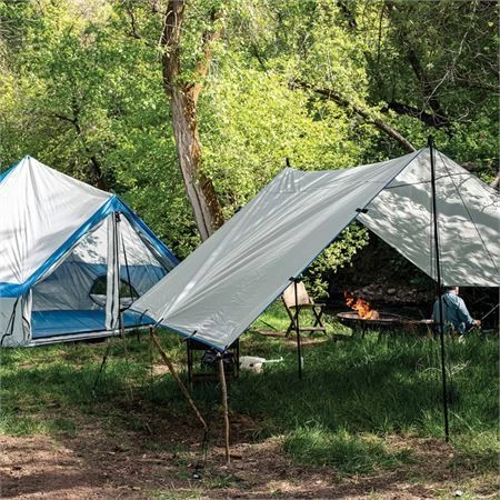 - Includes: (3) storage bags; (2) poles; (8) tie-down paracord; (8) stainless stakes