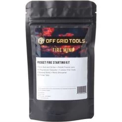 Model – OGTBFIREM. Pocket Fire Starting Kit. Includes: Ferro rod and striker; Pocket Fresnel lens; (6) Magnesium capsules; (4) Pieces Char cloth; Fatwood sticks; Pencil sharpener; (6) Tinder tabs. Comes in resealable pouch. Bulk packed. Made in China