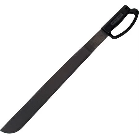 - 22.25″ black zinc phosphate finish 1095 carbon steel blade and one piece molded plastic handle with knuckle guard