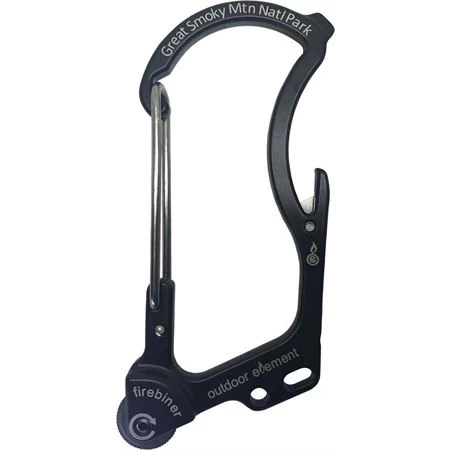 Model – ODEF1GSBLK. Firebiner Survival Carabiner. 3 inch overall. Features: EverSpark fire wheel, safety utility blade, screwdriver tip, hang slots, bottle opener, wire gate, and ferro rod. Black titanium coated stainless body. Rated for 100 lbs. (for gear only). Comes with two replacement ferro rods. Hang packaged.