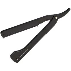 Model – SBT83501. Exchangeable Blade Razor. Exchangeable Blade Razor. 5.25 inch closed. 3.5 inch blade. Black stainless handle. Includes two plastic holders in red and black for 45mm and 65mm razor blades. Also includes 10 razor blades. Boxed.