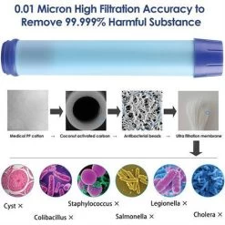 Model – MSLOEWB001. Simpure Water Filter Bottle Blue. Dimensions: 4.25″ x 3.13″ x 9.5″. Four stage filtration system. Filters up to 1500 liters. Easy to clean and portable. Filter accuracy: 0.1 micron. Flow rate: 650mL. Color: Blue. Boxed. Made in China.