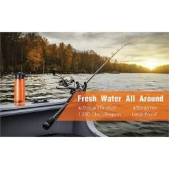 Model – MSLOEWB008. Simpure Water Filter Bottle Orange. Dimensions: 4.25″ x 3.13″ x 9.5″. Four stage filtration system. Filters up to 1500 liters. Easy to clean and portable. Filter accuracy: 0.1 micron. Flow rate: 650mL. Color: Orange. Boxed. Made in China.