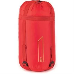 Model – SN98120. Basecamp Ruby Red Sleeping Bag. Construction: Aqualight 190T Polyester; Color: Red; Weight: 58oz; Other Info: 11 inch X 9 inch full compressed. Temperature rating: 28 degrees F (comfort), 19 degrees F (low). Length 87 inch. Chest 30 inch. Isofibre filling with Supersoft inner fabric. Hanging dry tabs. Anti-snag two-way zipper. Insulated zip baffle. Draft collar. Snugfit hood. Elasticated draw cord. Boxed.