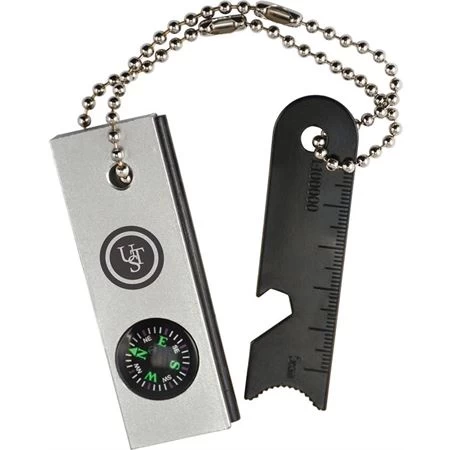 Model – WG02421. UST 02421 – Flintbar 7-in-1. 3″ overall. Tools include: Tinder scraper I Hex wrench I Compass I Flint I Striker I Ruler I Rescue mirror. Hang packaged. Made in China.