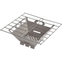 Model – VR319. Vargo 319 – Fire Box Titanium. Dimensions: 3″ x 6.25″ x 3.5″. Weight: 3.75oz. Folded dimensions: 5.25″ x 7.25″. Unique origami style assembly system that folds flat and stows easily in a backpack. Designed to pair perfectly with Vargo BiFold grill (not included). Black nylon pouch. Titanium construction. Bulk packed. Made in China.