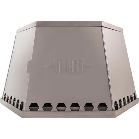 Model/Part Number – VR322. Vargo Outdoor Camping Gear MegaHex Portable Fire Pit. Weight: 25lb. Height assembled: 13.25″. Height folded: 2″. Top width: 15.75″. Bottom width: 24″ corner to corner. Bottom ashtray for easy cleanup. Folds flat for easy transport. Origami-style construction. Nylon carry case with handle. 201 stainless construction. Boxed. Made in China.