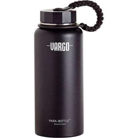 Model – VR461. Vargo 461 – Para-Bottle Vacuum Black with Stainless Steel Construction. Dimensions: 3.6″ x 3.6″ x 9″; Construction: Food Grade Stainless; Color: Black; Weight: 15oz; Other Info: Vacuum insulated (12h hot, 24h cold). BPA and BPS-free plastic geometric lid. Easy to screw off/on even with gloves. Food grade silicone O-ring. 7′ customizable paracord carry loop. Fits most standard backcountry water filters and accessories. 32 oz capacity. Boxed. Made in China.