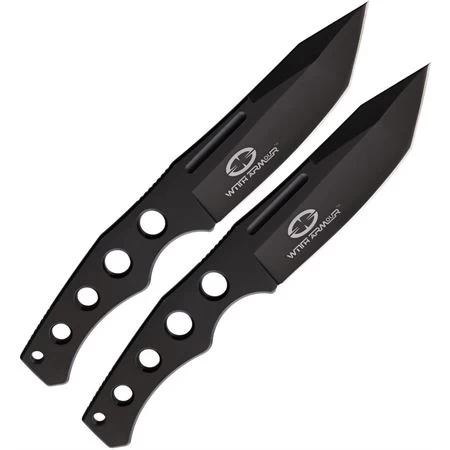 Model – WAR058BK. WithArmour 058BK – Aces Throwing Knife Set. 8.5″ (21.59cm) overall. 4.5″ (11.43cm) black coated 440 stainless tanto blade. One-piece construction. Lanyard hole. Black nylon belt sheath. Boxed. Made in China.